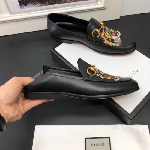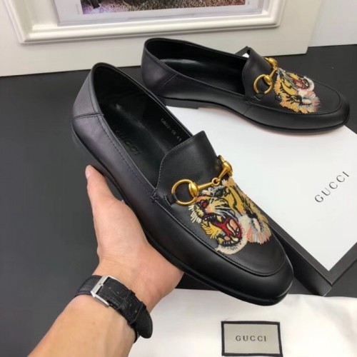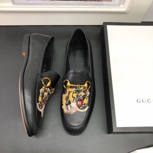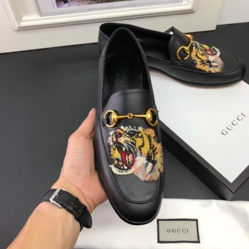 Gucci Leather Men's Loafer With Embroidered Tiger Black