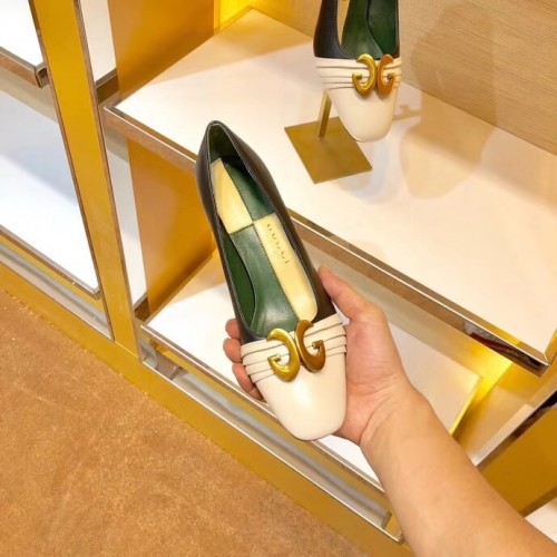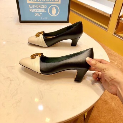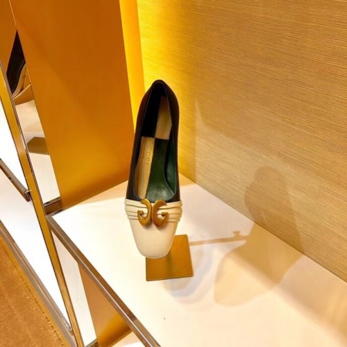 Gucci Leather Mid-heel Pumps with Half Moon GG 565600 Off White 2019