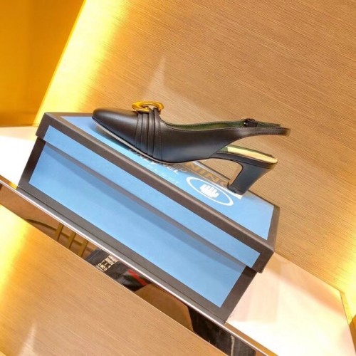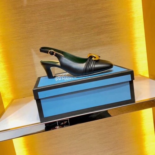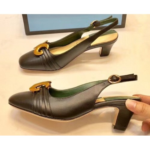 Gucci Leather Mid-heel Slingback Pumps with Half Moon GG 572818 Black 2019