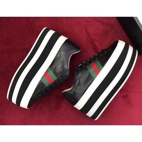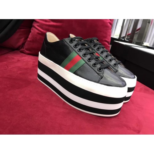 Gucci Leather Platform Web Stripe Sneaker Black 476783 2017