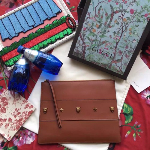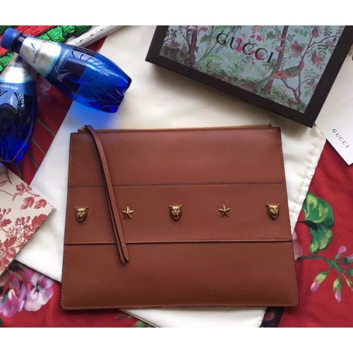 Gucci leather studded pouch 427003 brown