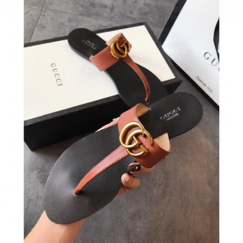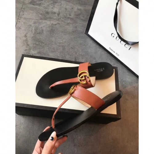 Gucci Leather Thong Sandals with Double G 497444 Brown