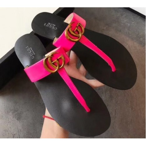 Gucci Leather Thong Sandals with Double G 497444 Fuchsia
