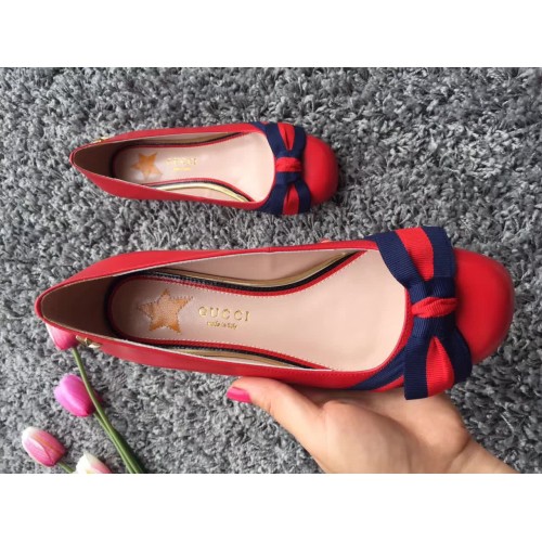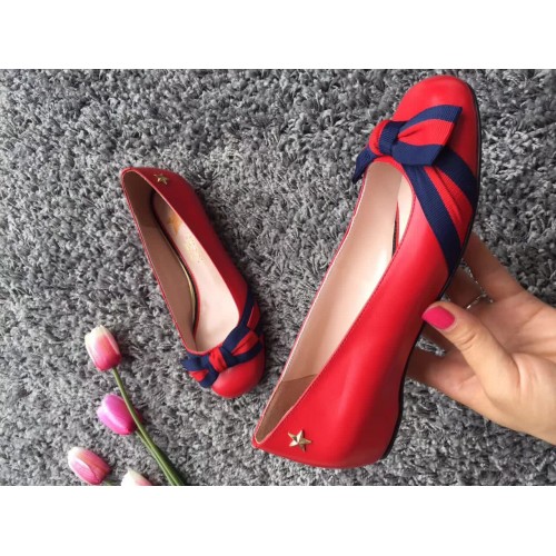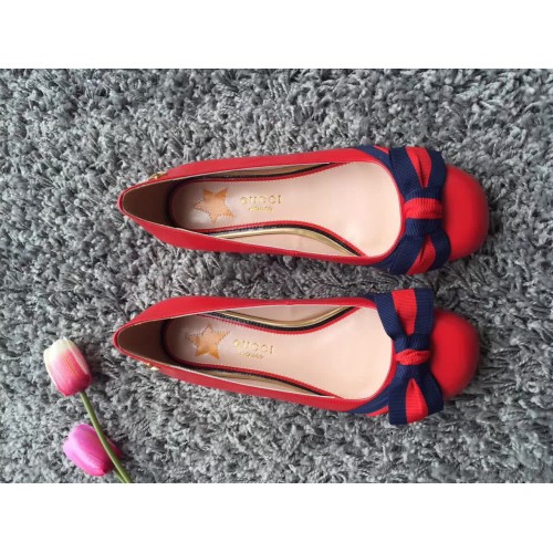 Gucci Leather Web Details Shoes 432045 Red 2017
