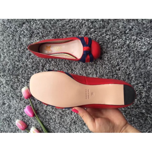 A round-toe flat with a grosgrain Web bow that wraps over the front of the shoe. The Web continues to be an essential part of each new collectsion and plays tribute to Gucci's roots.