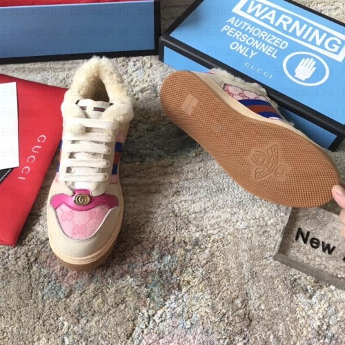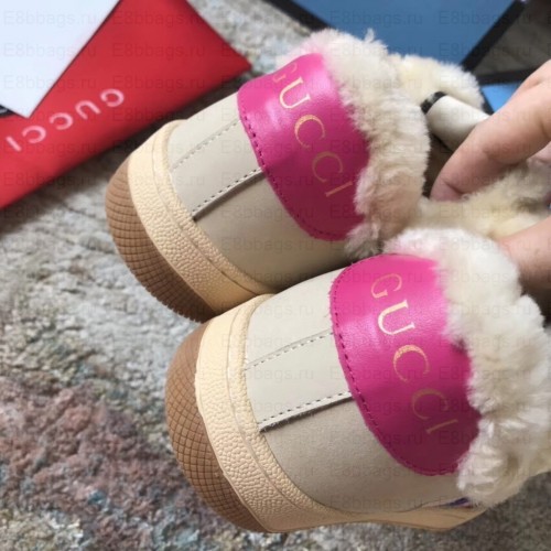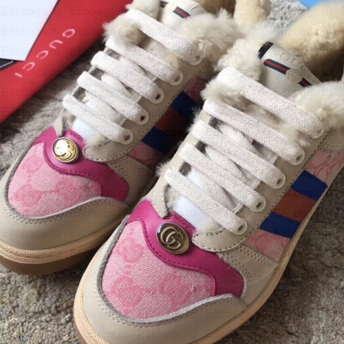 Tags: Gucci Leather Web Screener Shearling Sneakers Pink, , Women Shoes