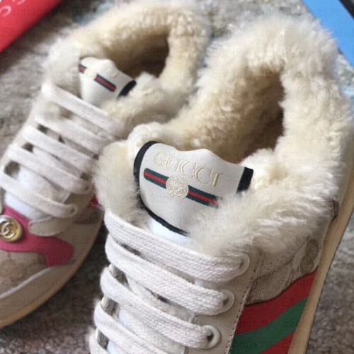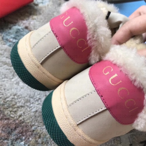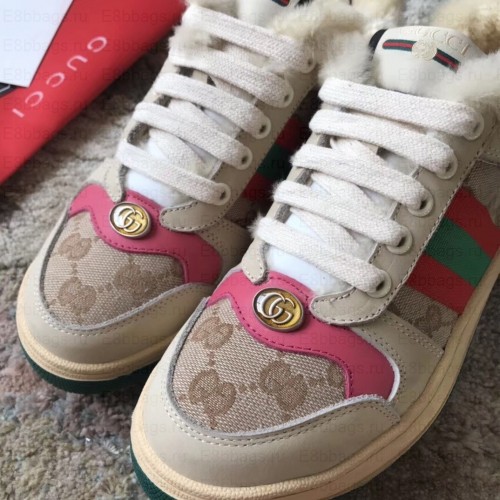 Tags: Gucci Leather Web Screener Shearling Sneakers Pink/Beige, shoes1204-7, Women Shoes