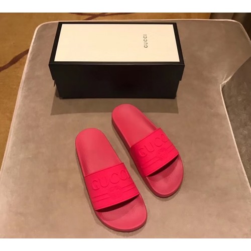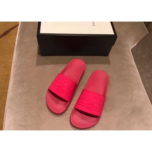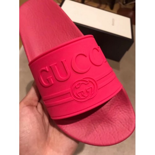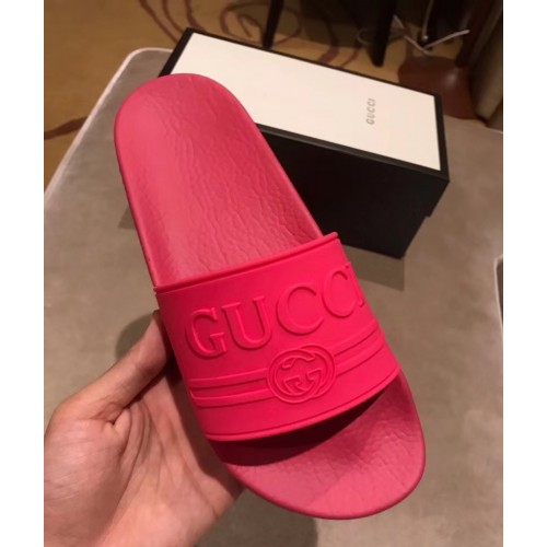 Gucci Logo Rubber Slide Sandals Fuchsia 2019