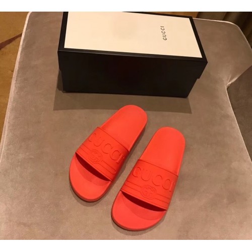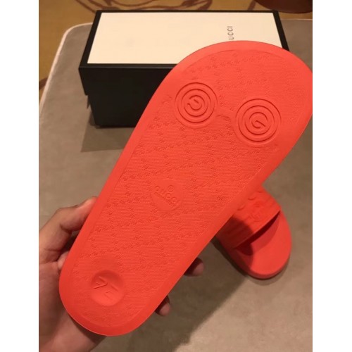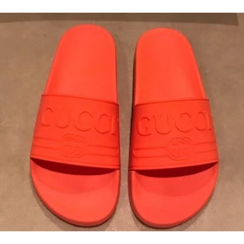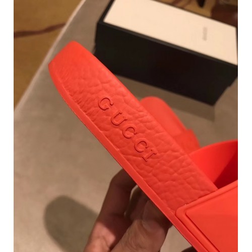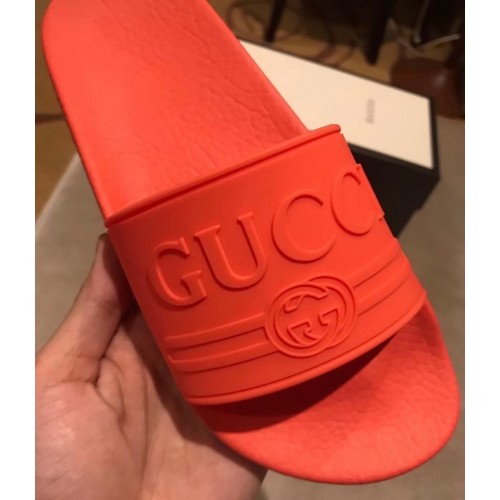 Gucci Logo Rubber Slide Sandals Orange 2019