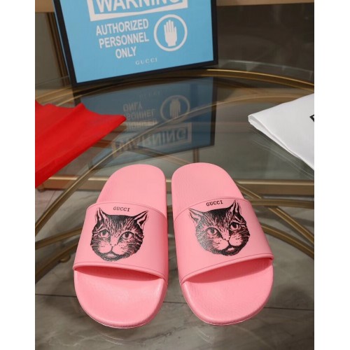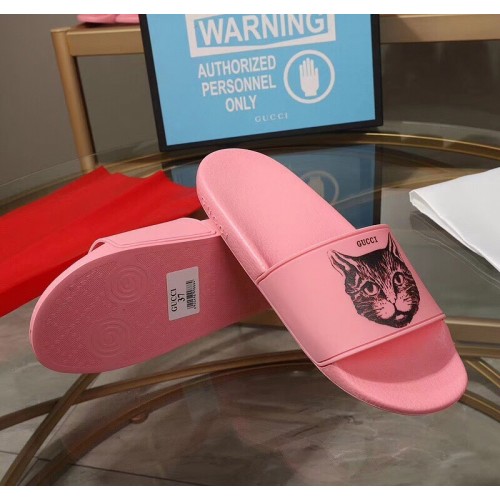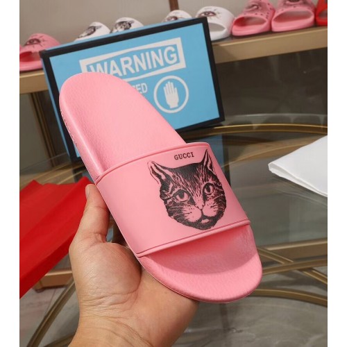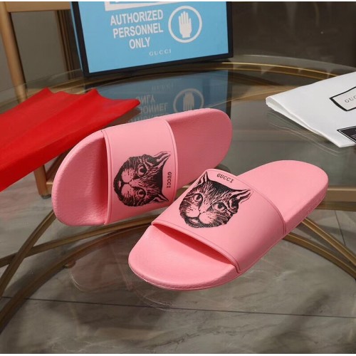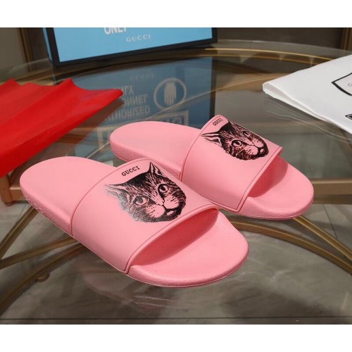 Gucci Logo Slide Sandals Cat Pink 2019