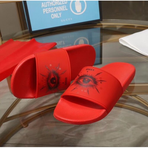 Gucci Logo Slide Sandals Eye Red 2019