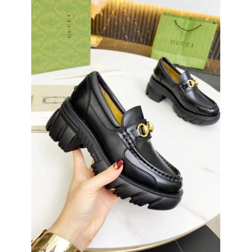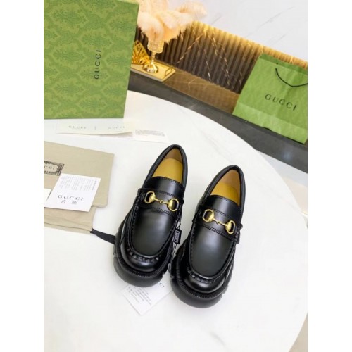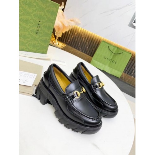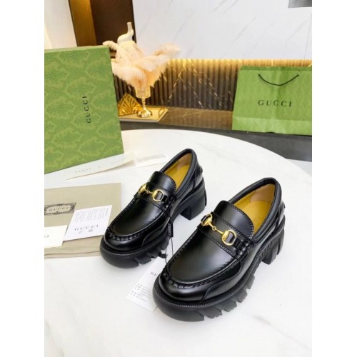 Gucci Lug Sole Horsebit Loafers In Black Calfskin