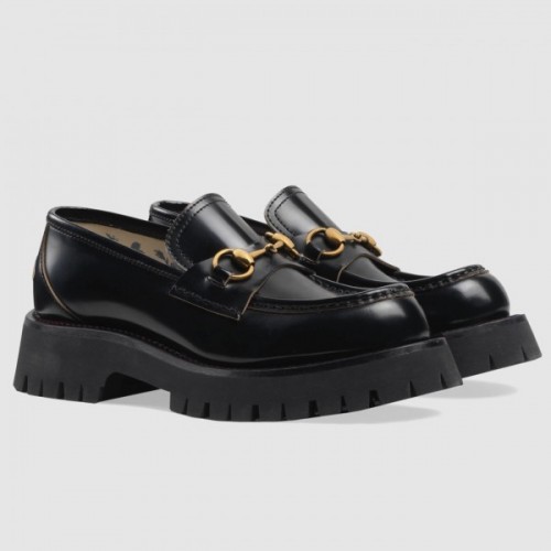 Gucci Lug Sole Horsebit Loafers In Black Calfskin