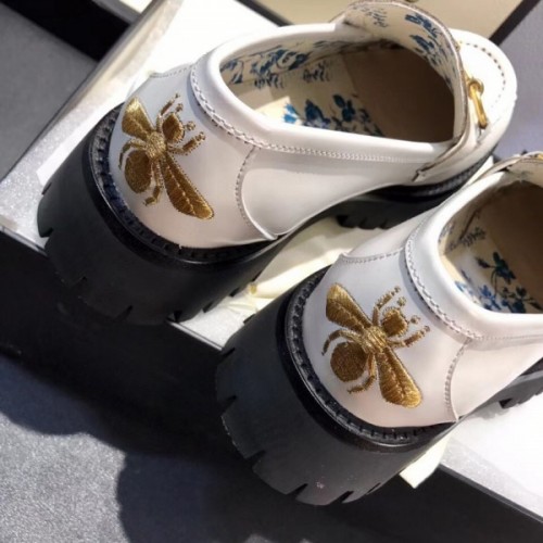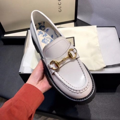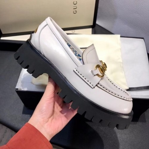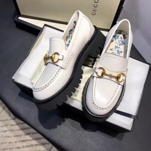 Gucci Lug Sole Horsebit Loafers In White Leather