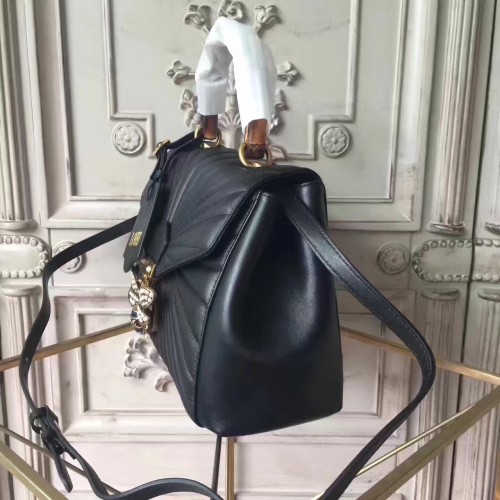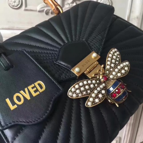 Gucci Margaret Quilted Leather Metal Bee Detail Top Handle Bag 476531 Black 2017