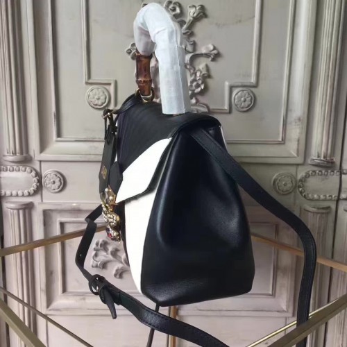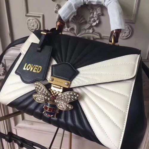 Gucci Margaret Quilted Leather Metal Bee Detail Top Handle Bag 476531 White/Black 2017