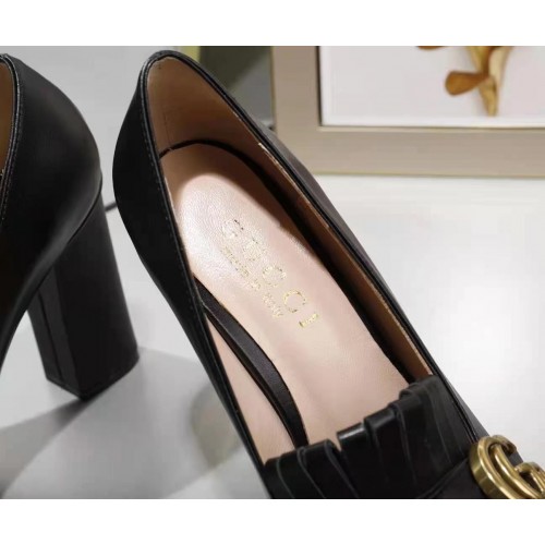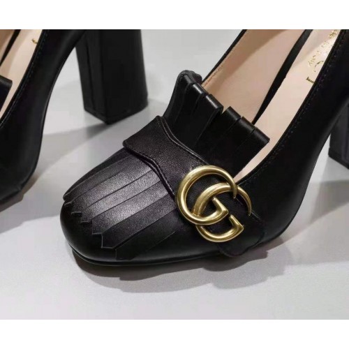 Gucci Marmont Fringed Loafer Heels 105 In Black
