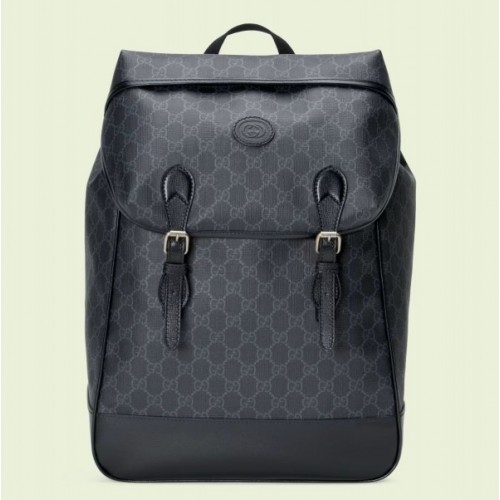 The Interlocking G has remained one of the most symbolic codes of the House since its introduction. The distinguishing emblem appears as a leather detail atop this backpack as a subtle reference to Founder Guccio Gucci. Completing the design's logo feel, a contemporary black GG Supreme canvas appears alongside a black leather trim.