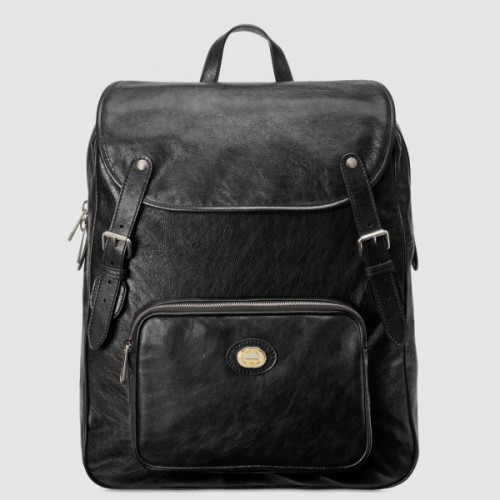 - Flap with zipper closure—leather buckle straps have an additional magnetic closure for ease of opening
