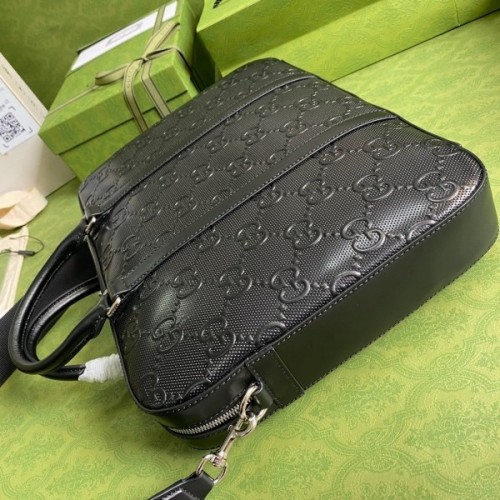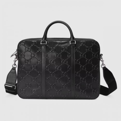 Tags: Gucci Medium Briefcase Bag In Black GG Embossed Leather, ,