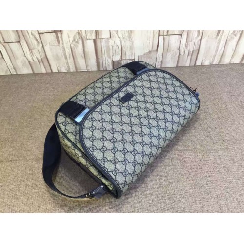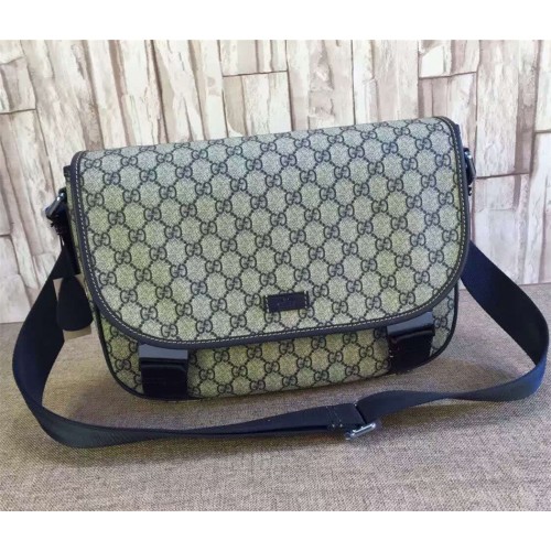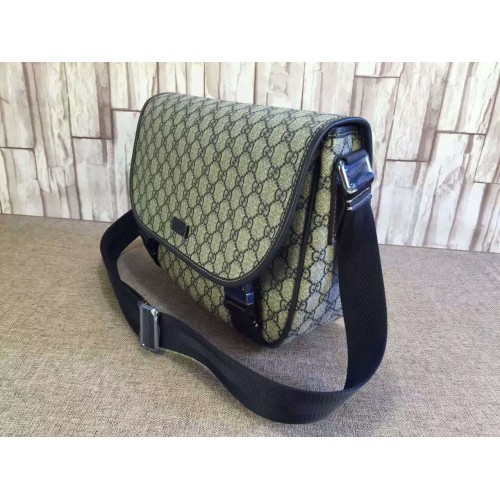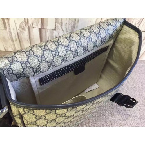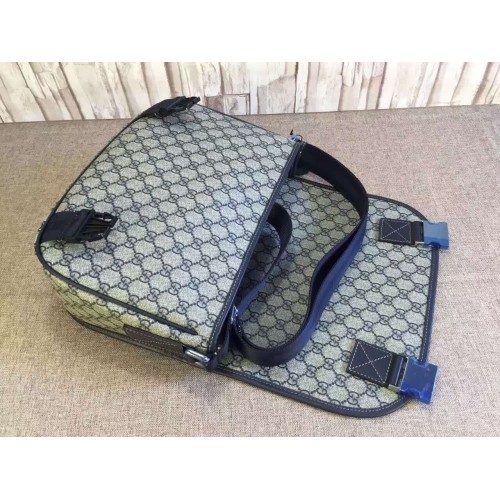 beige/blue GG plus with blue leather trimadjustable shoulder strapflap and gucci engraved clip closuresinside pocketW33cm x H23.5cm x D11cm