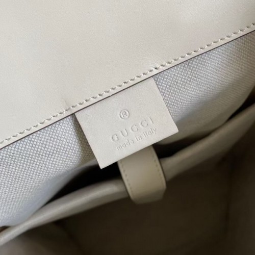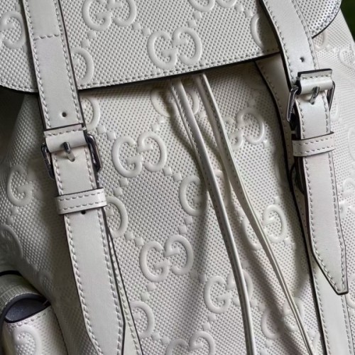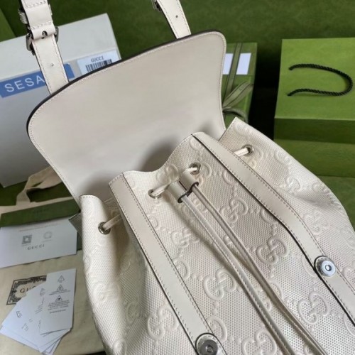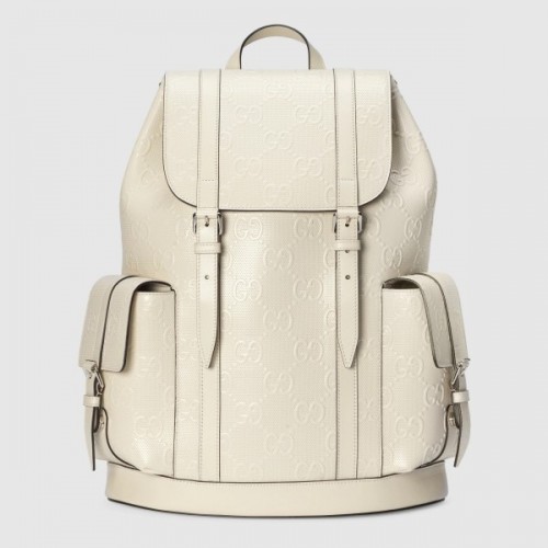 Noted for its softness and slightly shiny finish, GG leather is presented within the Pre-Fall 2020 collectsion playing with texture, embossing the House emblem onto a white perforated leather base. The backpack is equipped with multiple exterior and interior pockets including a padded laptop case and smartphone cases. The functional buckle closures have additional magnetic snaps that allow for easy opening.