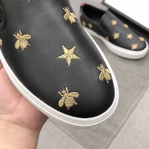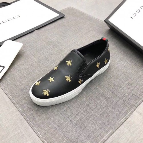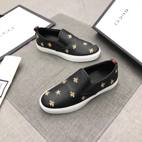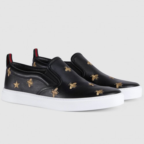 Gucci Men's Black Leather Slip-on Sneaker With Bees