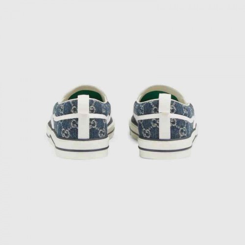 Presented in eco washed organic jacquard denim, the Gucci Tennis 1977 pays tribute to different eras..