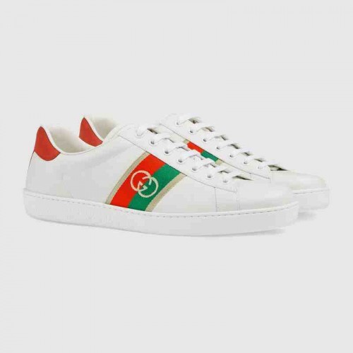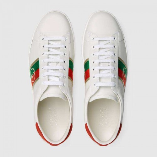 Gucci Men's White Ace Sneakers With Web Interlocking G