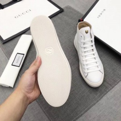 Your everyday shoe repertoire gets a designer update in these high-top sneakers from Gucci. Crafted from soft leather, the classic style boasts an embroidered tiger motif to the ankles. Pair them with jeans and a casual shirt for effortless styling.