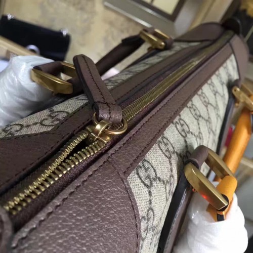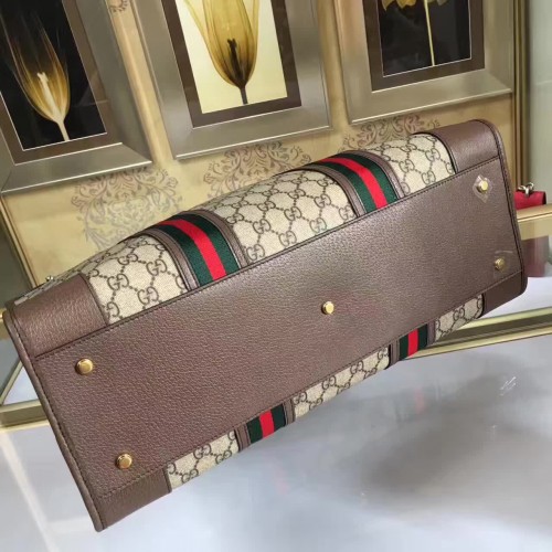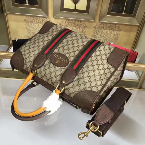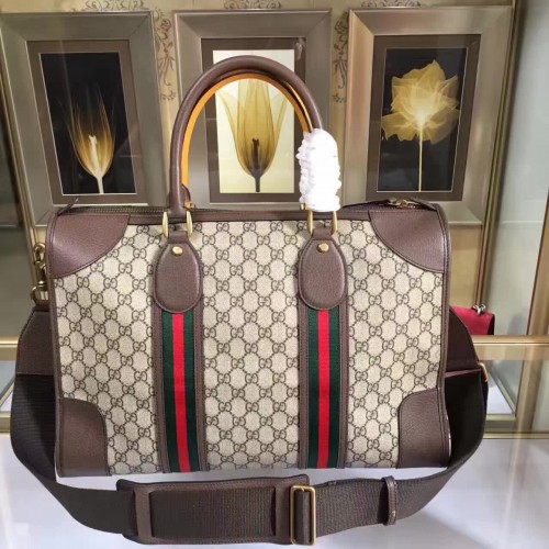 Gucci mens suitcases duffle bags soft GG supreme duffle bag with web 459311 Brown leather(JLX-741302)