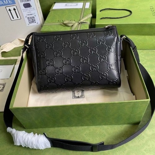 Tags: Gucci Messenger Bag In Black GG Embossed Perforated Leather, ,