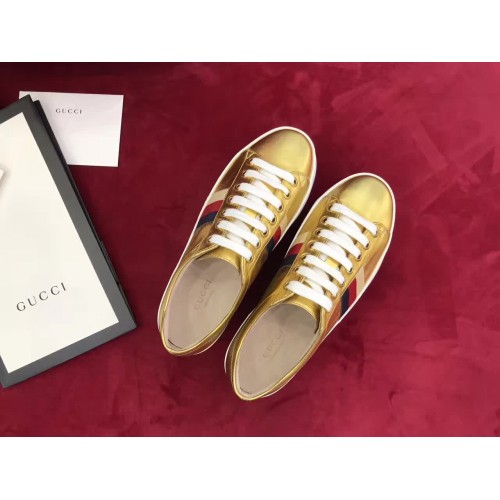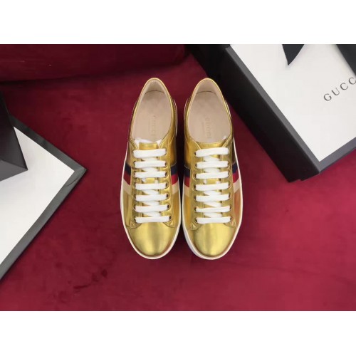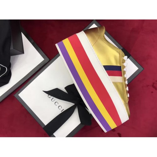 Gucci Metallic Gold Leather Rainbow Platform Sneaker 474538 2017