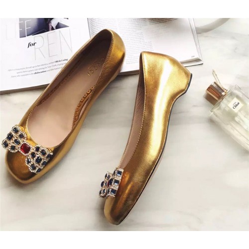 Gucci Metallic leather ballet flat 432605 gold