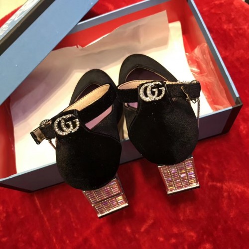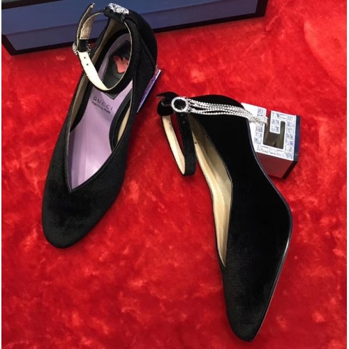 Gucci Mid-Heel 7cm Pumps With Crystal G Heel 548853 Velvet Black 2019