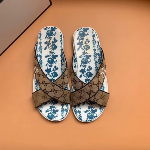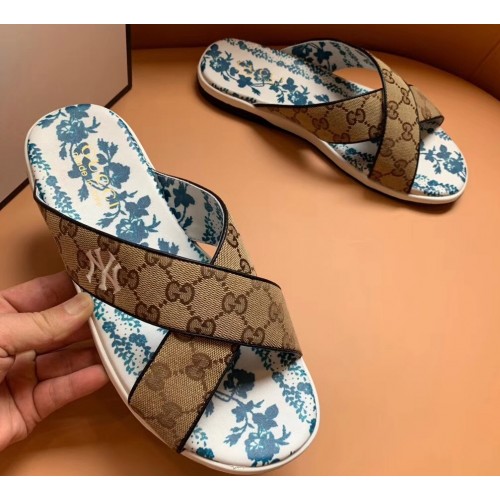 Gucci NY GG Canvas Men's Crossover Slide Sandals Beige 2019