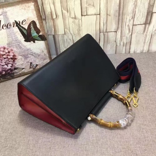 Gucci Nymphaea Leather Top Handle Medium Bag 453764 Black/Red 2017