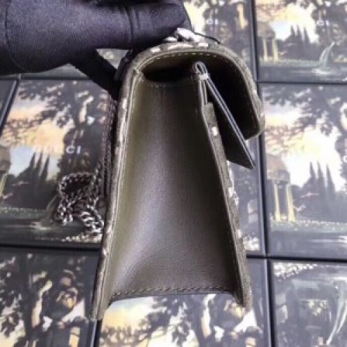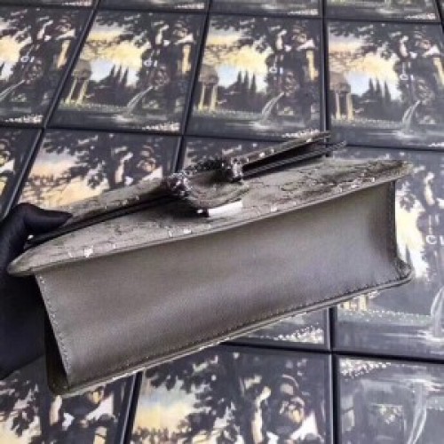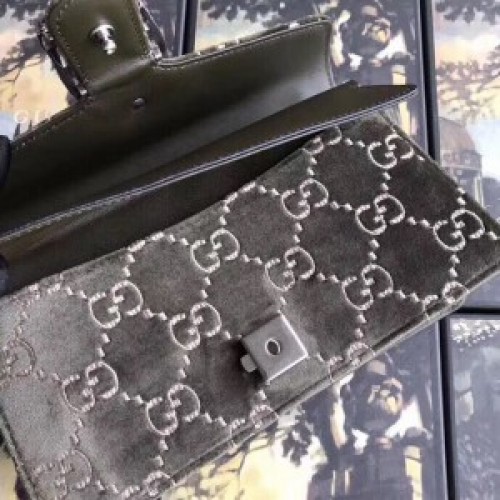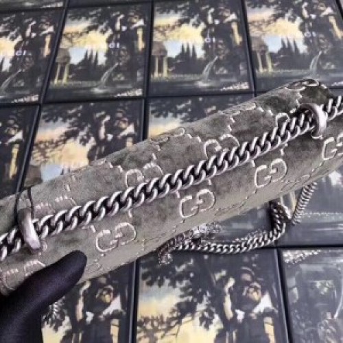 Introduced in GG velvet—an archival material with the GG motif embedded into soft velvet—the Dionysus shoulder bag continues to be a defining silhouette. Enriched with crystals, the tiger head closure is a unique detail referencing the Greek god Dionysus, who in myth is said to have crossed the river Tigris on a tiger sent to him by Zeus. The sliding chain strap can be worn multiple ways, changing between a shoulder and a top handle bag.