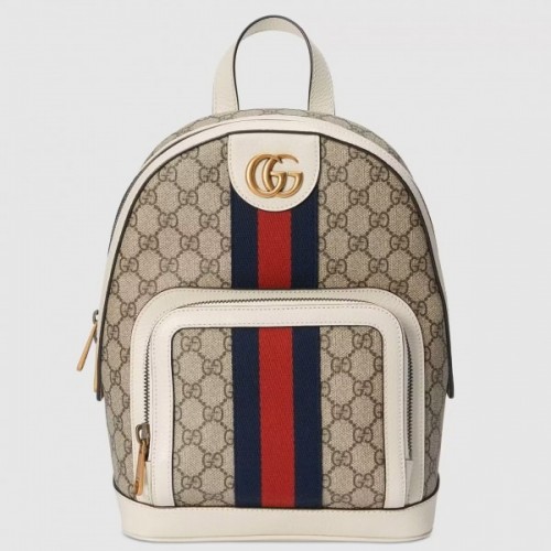 Gucci Ophidia GG Supreme Backpack With White Leather