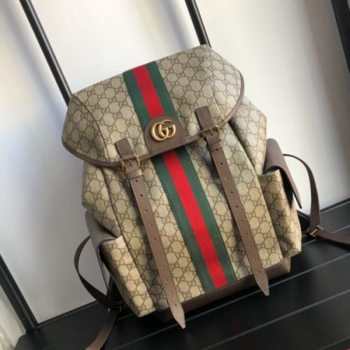 With a hiking pack inspired shape, the medium-sized backpack is crafted in GG Supreme canvas contrasted with technical mesh details. A classic combination of the House's most recognizable elements—the GG motif and Web stripe—the world of Ophidia continues to evolve, incorporating new shapes and silhouettes. Trimmed with textured brown leather, the bag is finished with the Double G hardware which defines the line.