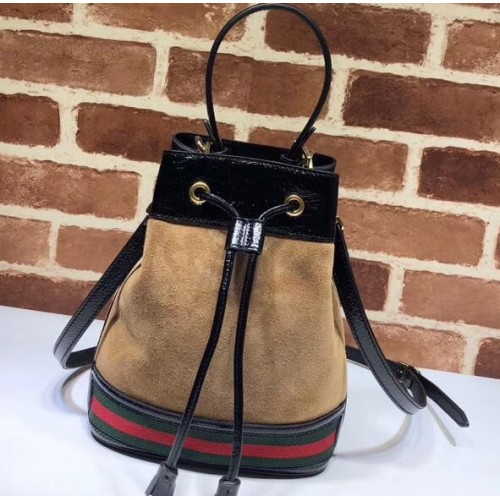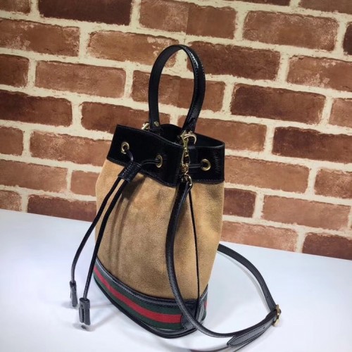 Gucci Ophidia Web Suede Small Bucket Top Handle Bag 550621 Brown
