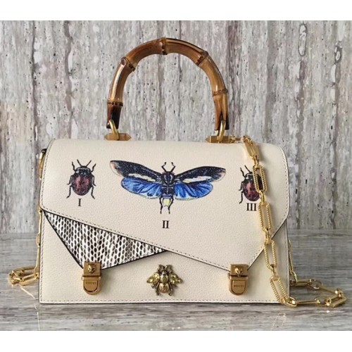 Gucci Ottilia Calfskin Leather Small Top Handle 488715 White 2017