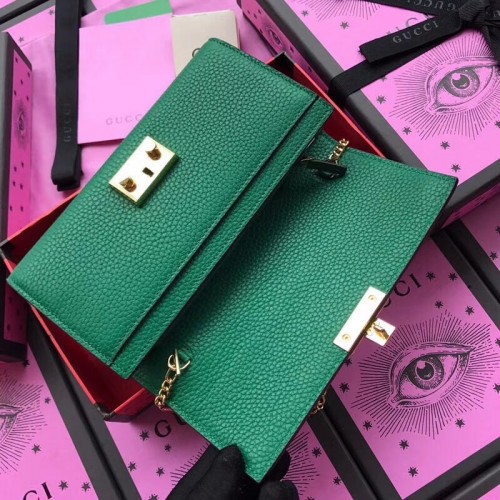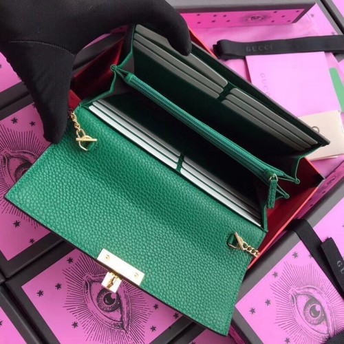 Gucci Padlock Calfskin Continental Chain Wallet 453506 Green