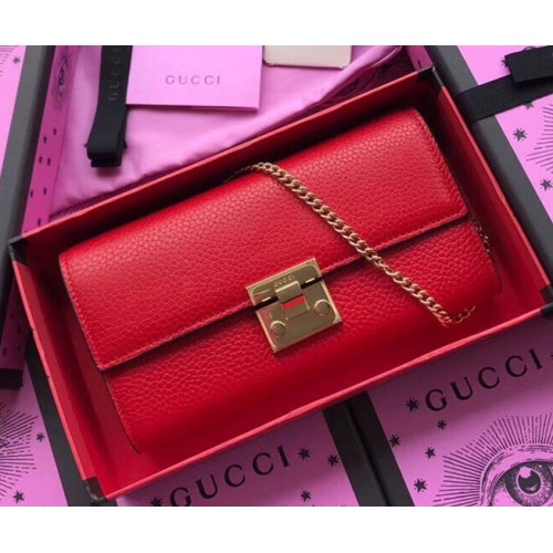 Gucci Padlock Calfskin Continental Chain Wallet 453506 Red
