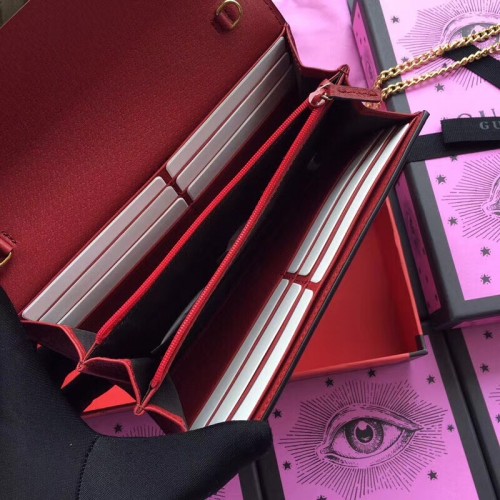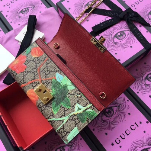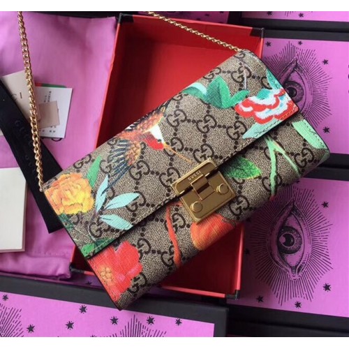 Gucci Padlock GG Blooms and Bird Continental Chain Wallet 453506 Pink