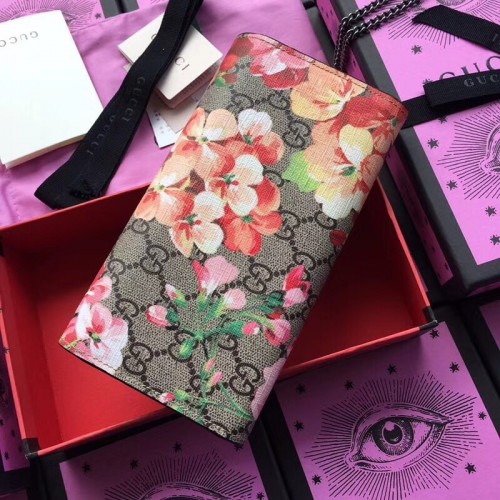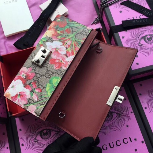 Gucci Padlock GG Blooms Continental Chain Wallet 453506 Pink