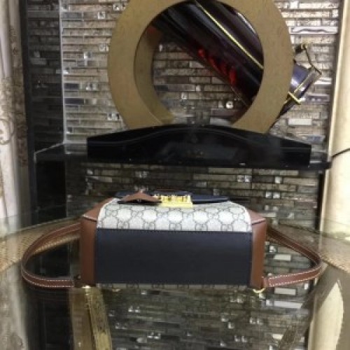 The structured backpack features defining details from the Padlock collectsion, in GG Supreme canvas with black and brown leather trims. The chain top handle is distinctive to the line, along with the key lock closure pulled straight from the archives. The key is placed in a detachable leather key case.
