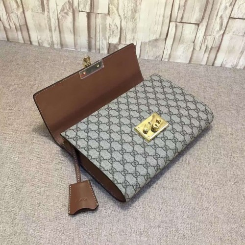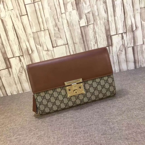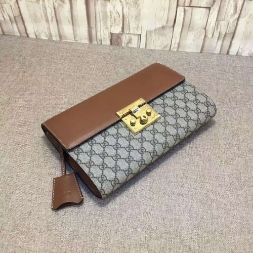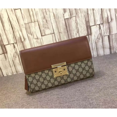 Gucci padlock GG supreme clutch 432125 brown
