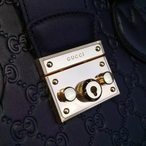 A new shape from the Padlock collectsion, this small size top handle bag has our key lock closure pulled straight from the archives, the key is placed in a leather key case that loops around handle. Made in heat debossed Gucci Signature leather resulting in a defined print with a firm texture.Gucci Signature leather with hibiscus red leather detailKey with leather holderInterior zip and smartphone pocketsInternal compartmentTwo side gussetsTop handle Adjustable shoulder strap Lock closureSmall33*12*23.5Microfiber lining with a suede-like finishMade in ItalyGold toned hardware