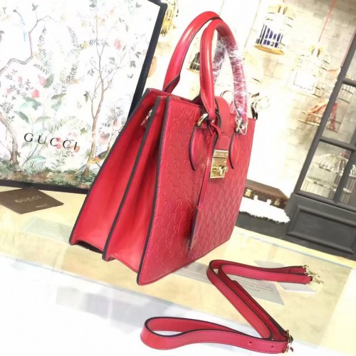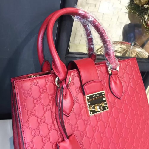 A new shape from the Padlock collectsion, this small size top handle bag has our key lock closure pulled straight from the archives, the key is placed in a leather key case that loops around handle. Made in heat debossed Gucci Signature leather resulting in a defined print with a firm texture.Gucci Signature leather with hibiscus red leather detailKey with leather holderInterior zip and smartphone pocketsInternal compartmentTwo side gussetsTop handle Adjustable shoulder strap Lock closureSmall33*12*23.5Microfiber lining with a suede-like finishMade in ItalyGold toned hardware